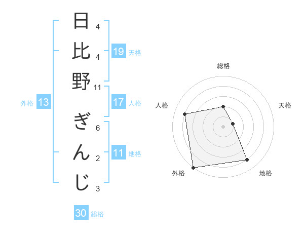 日比野 ぎんじさんを姓名の画数から五運を鑑定
