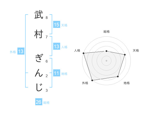 武村 ぎんじさんの外格は13画の5点!
