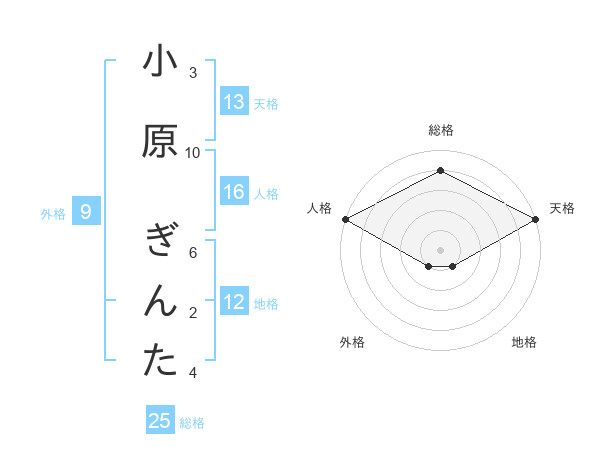 小原 ぎんたさんを姓名の画数から五運を鑑定