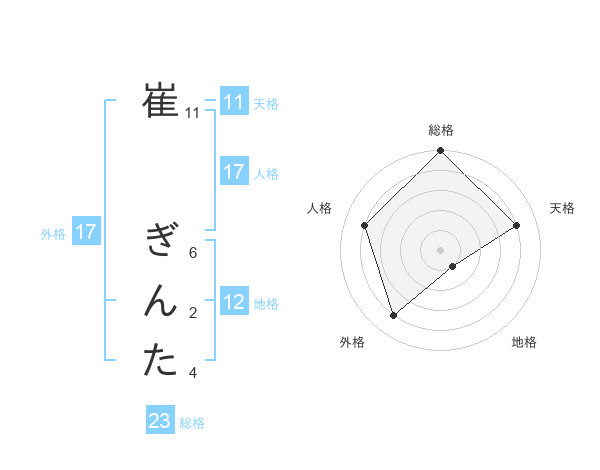 崔 ぎんたさんを姓名の画数から五運を鑑定