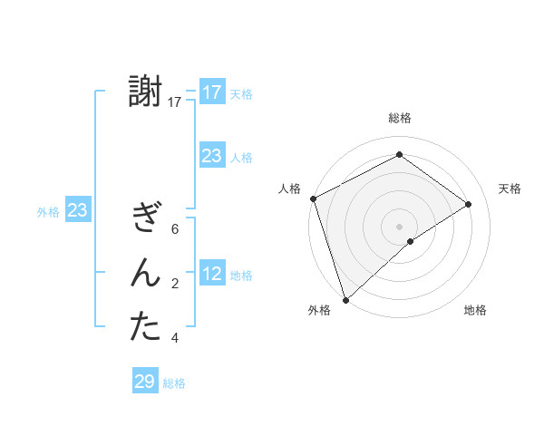 謝 ぎんたさんを姓名の画数から五運を鑑定