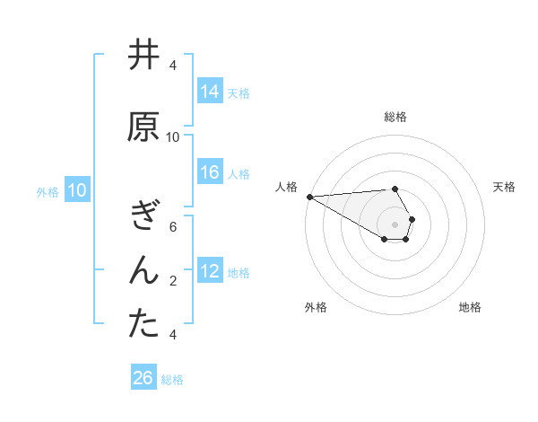 井原 ぎんたさんを姓名の画数から五運を鑑定