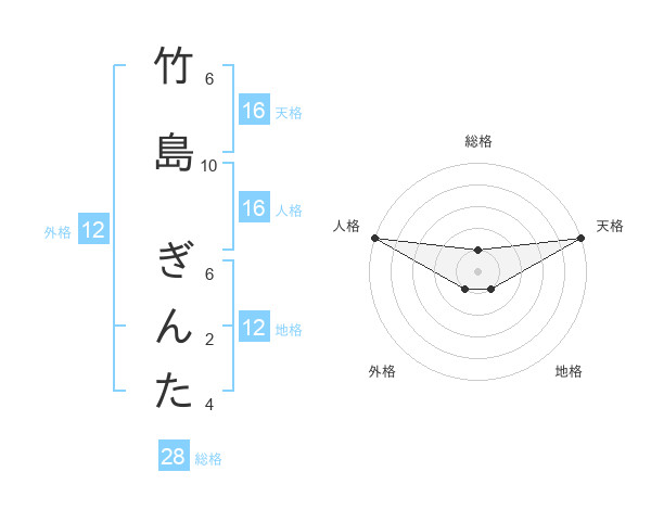竹島 ぎんたさんを姓名の画数から五運を鑑定