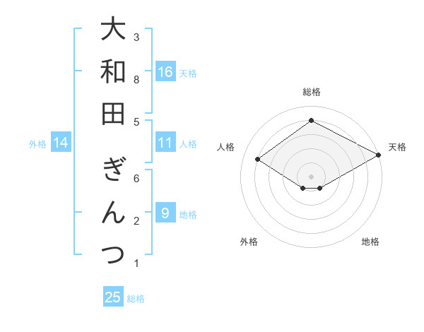 大和田 ぎんつさんを姓名の画数から五運を鑑定
