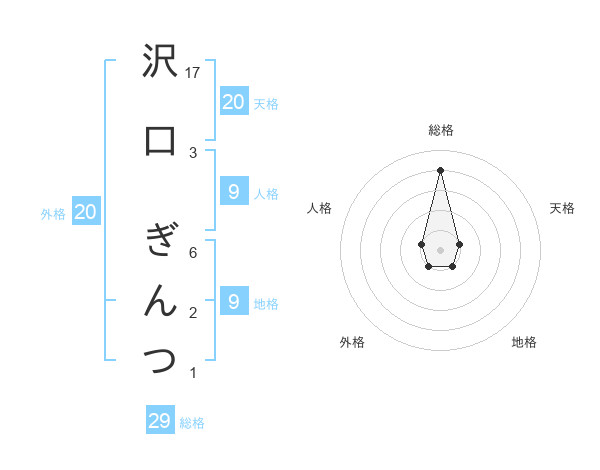沢口 ぎんつさんを姓名の画数から五運を鑑定