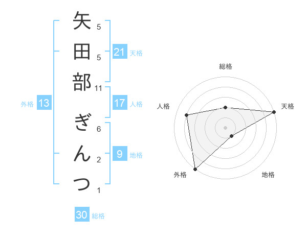 矢田部 ぎんつさんを姓名の画数から五運を鑑定