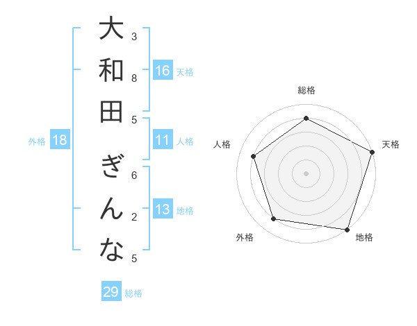 大和田 ぎんなさんを姓名の画数から五運を鑑定