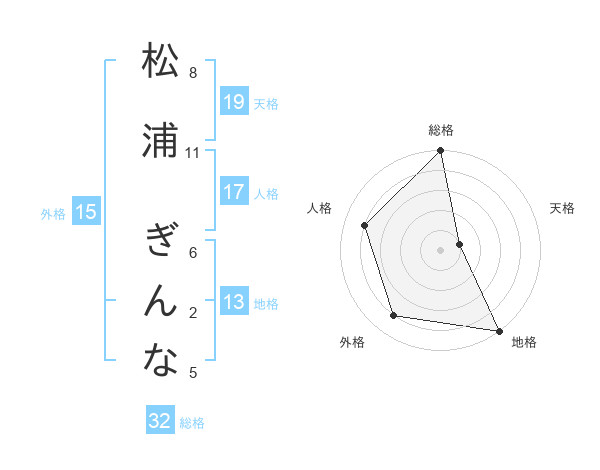 松浦 ぎんなさんを姓名の画数から五運を鑑定