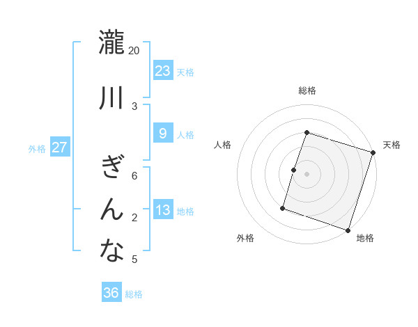 瀧川 ぎんなさんの天格は23画の5点!