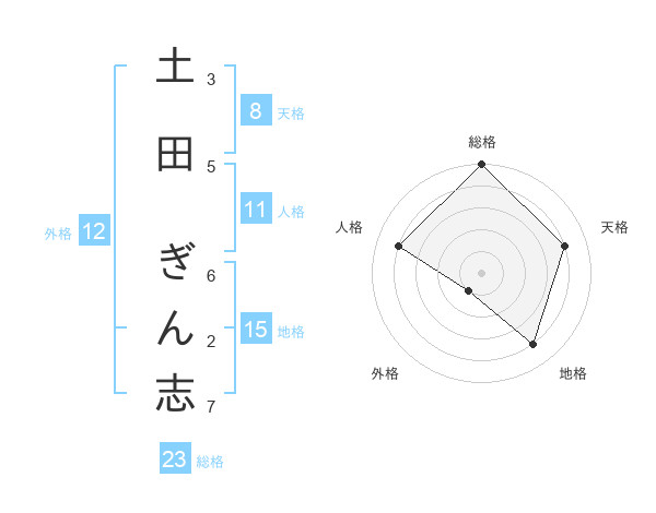 土田 ぎん志さんの総格は23画の5点!