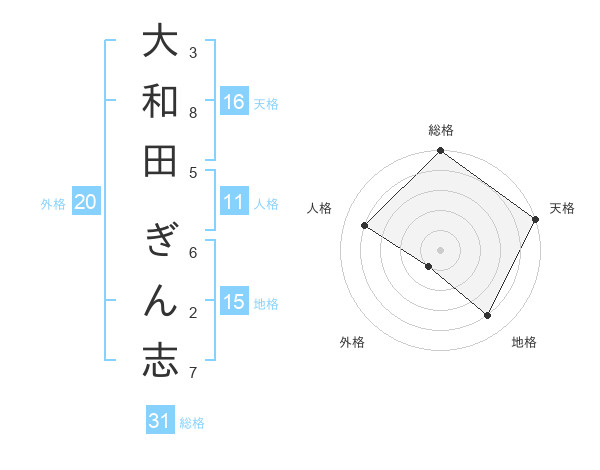 大和田 ぎん志さんを姓名の画数から五運を鑑定
