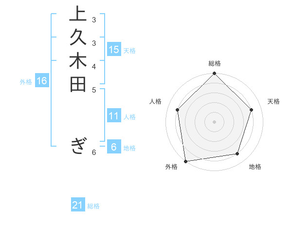上久木田 ぎさんの総格は21画の5点!