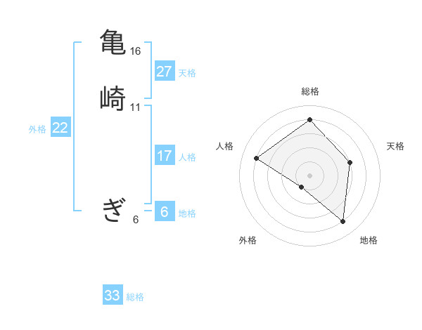 亀崎 ぎさんを姓名の画数から五運を鑑定