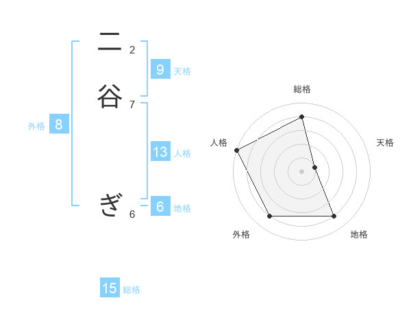 二谷 ぎさんの総格は15画の4点!