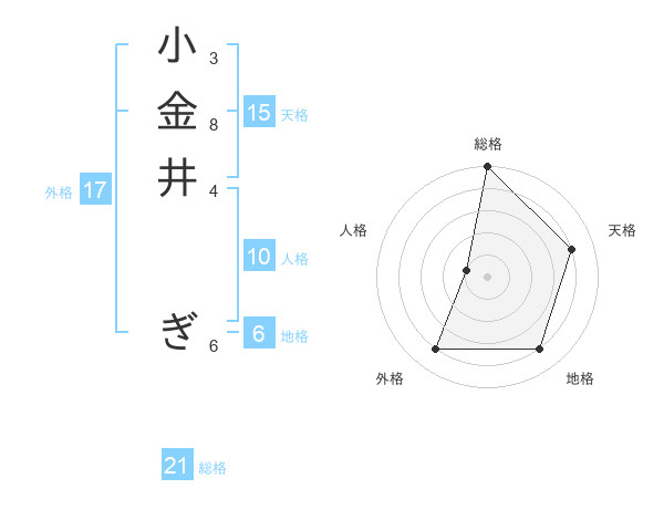 小金井 ぎさんを姓名の画数から五運を鑑定
