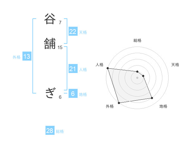 谷舗 ぎさんを姓名の画数から五運を鑑定