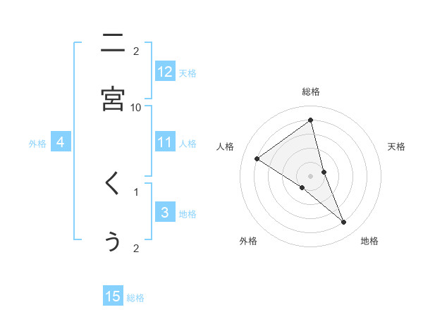 二宮 くぅさんの総格は15画の4点!