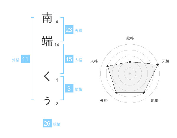 南端 くぅさんの総格は26画の2点!