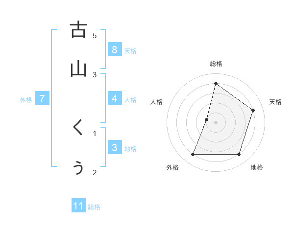本サイトの鑑定結果の正当性は保証しません。鑑定結果は参考程度にお読みください。実際の名づけにご利用される場合は、姓名判断についてご自身でよくお調べください。