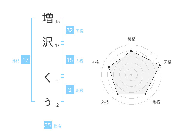 増沢 くぅさんを姓名の画数から五運を鑑定