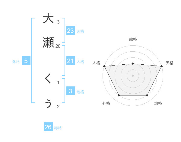 大瀬 くぅさんを姓名の画数から五運を鑑定