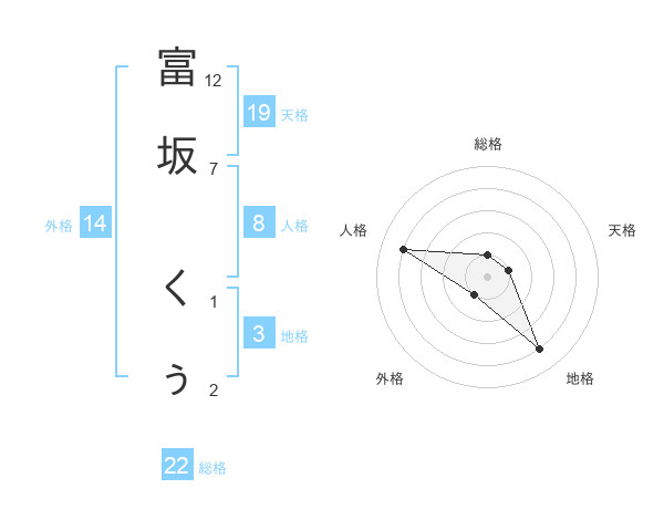 富坂 くぅさんを姓名の画数から五運を鑑定