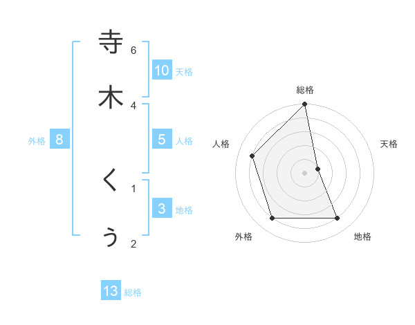 寺木 くぅさんの総格は13画の5点!