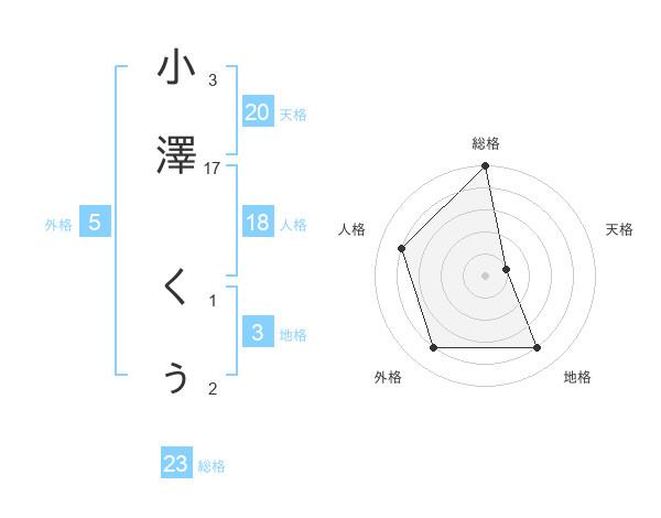 小澤 くぅさんの総格は23画の5点!