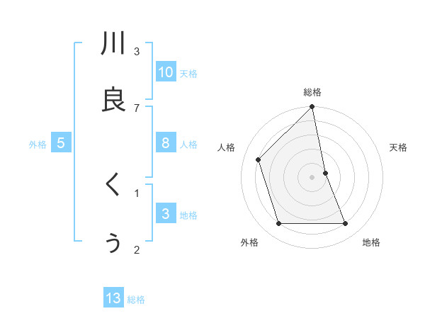 川良 くぅさんの総格は13画の5点!