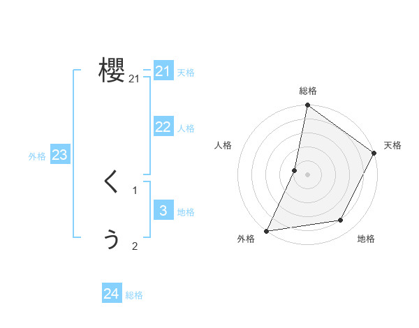 櫻 くぅさんの天格は21画の5点!