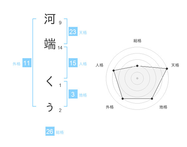 河端 くぅさんの天格は23画の5点!