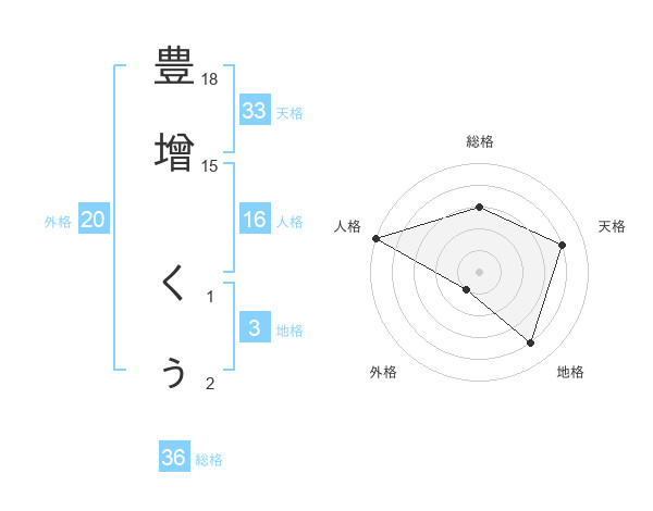 豊增 くぅさんを姓名の画数から五運を鑑定