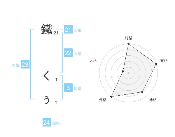 鐵 くぅさんの天格は21画の5点!