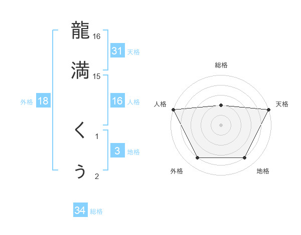 龍満 くぅさんを姓名の画数から五運を鑑定
