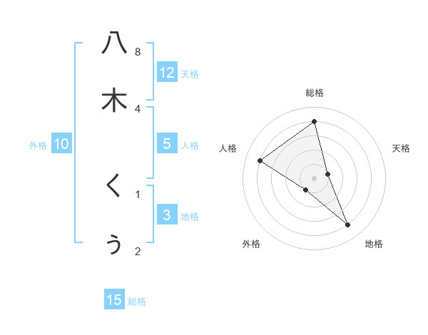 本サイトの鑑定結果の正当性は保証しません。鑑定結果は参考程度にお読みください。実際の名づけにご利用される場合は、姓名判断についてご自身でよくお調べください。