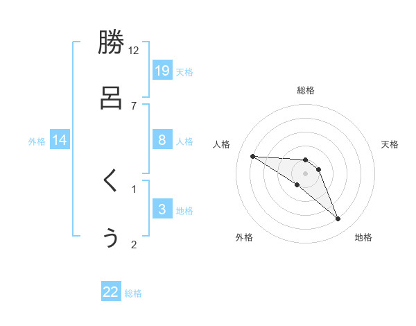 勝呂 くぅさんを姓名の画数から五運を鑑定