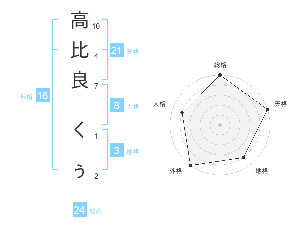 高比良 くぅさんを姓名の画数から五運を鑑定