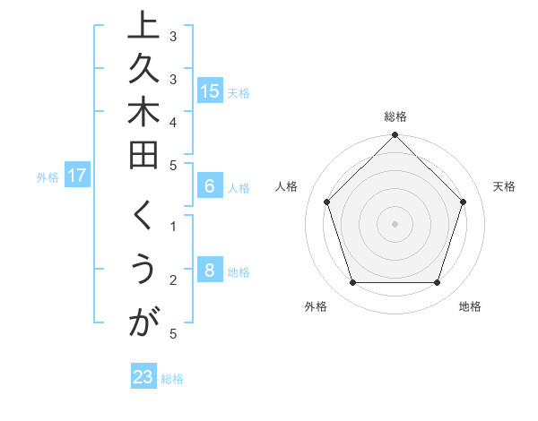 上久木田 くうがさんを姓名の画数から五運を鑑定