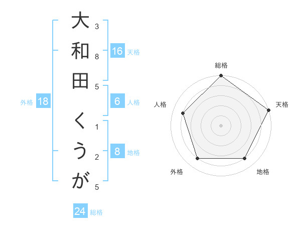 大和田 くうがさんの総格は24画の5点!