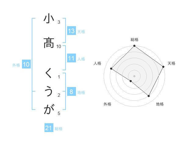 小髙 くうがさんの天格は13画の5点!