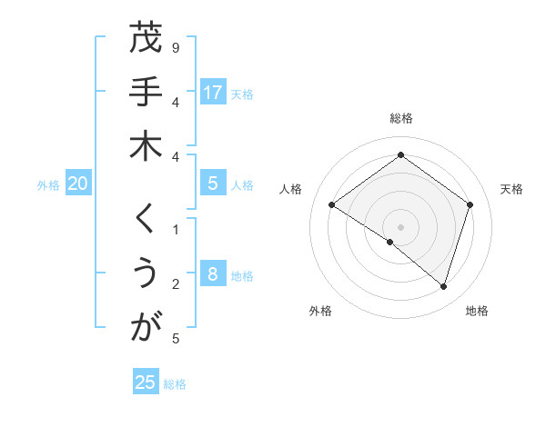 茂手木 くうがさんを姓名の画数から五運を鑑定