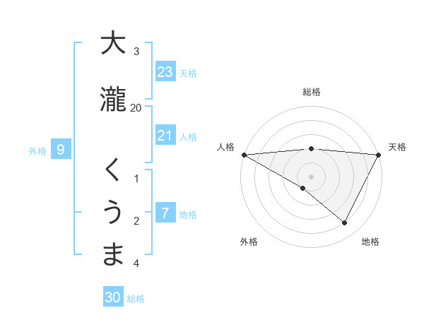 大瀧 くうまさんの総格は30画の2点!