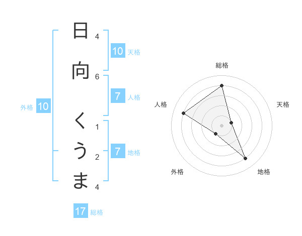 日向 くうまさんの総格は17画の4点!