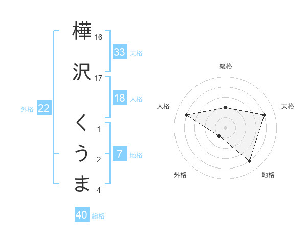 樺沢 くうまさんを姓名の画数から五運を鑑定