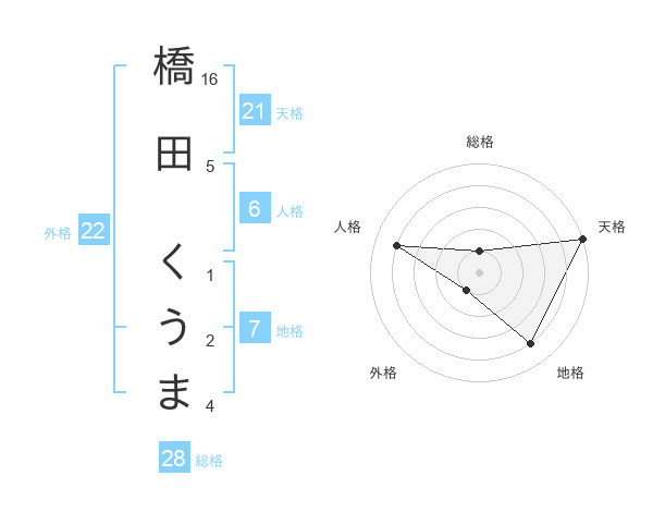 橋田 くうまさんを姓名の画数から五運を鑑定