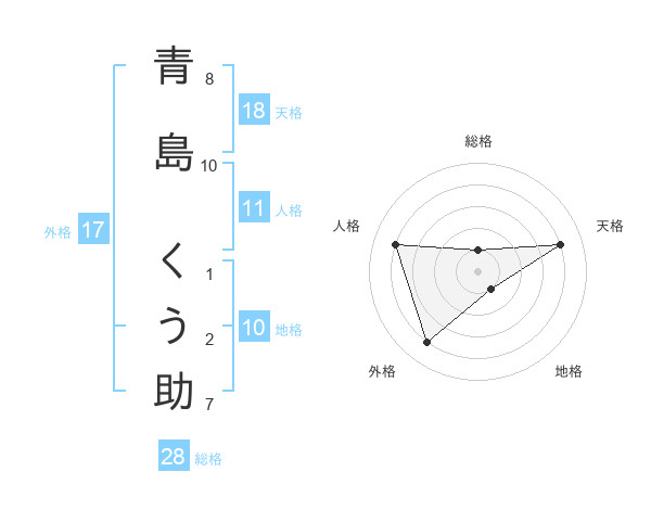 本サイトの鑑定結果の正当性は保証しません。鑑定結果は参考程度にお読みください。実際の名づけにご利用される場合は、姓名判断についてご自身でよくお調べください。