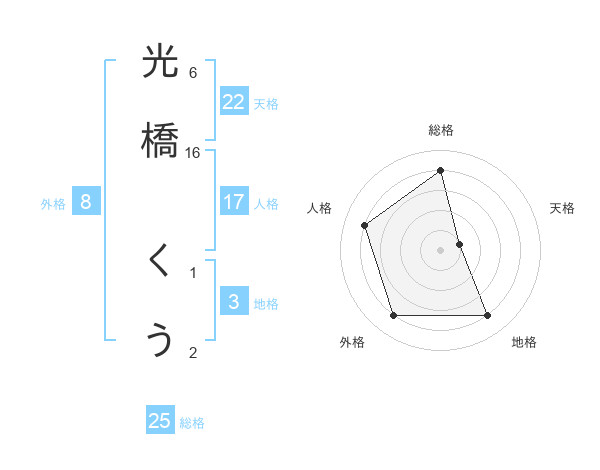 光橋 くうさんの外格は8画の4点!