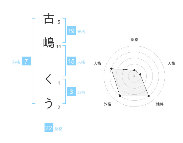 古嶋 くうさんの外格は7画の4点!