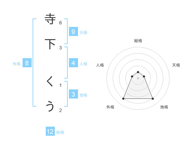 寺下 くうさんの総格は12画の1点!