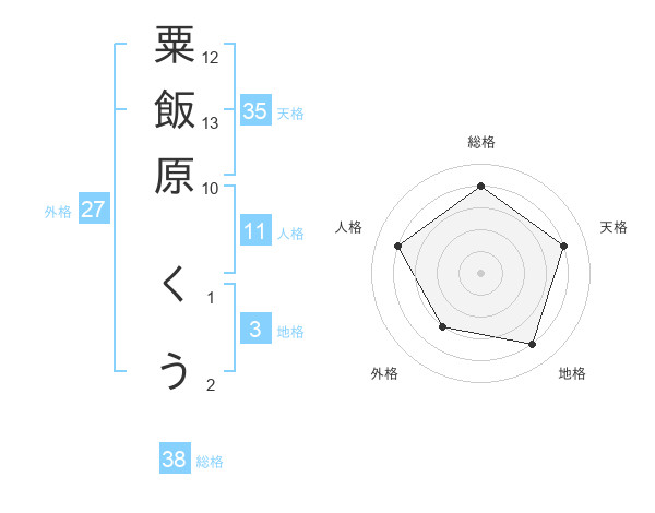 粟飯原 くうさんを姓名の画数から五運を鑑定